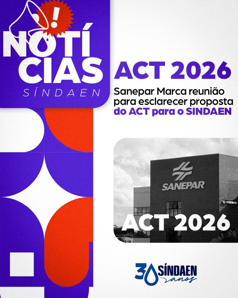 Após a repercussão negativa da proposta apresentada para o ACT 2026 e diante dos questionamentos feitos pelas entidades sindicais, a direção da Sanepar marcou reunião com os sindicatos majoritários para prestar esclarecimentos. O encontro está agendado para o próximo dia 25 de fevereiro. O SINDAEN informa que, desde o recebimento da proposta, as entidades representativas […]