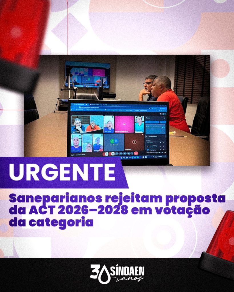 Os trabalhadores e trabalhadoras da Sanepar participaram da votação convocada pelo SINDAEN para deliberar sobre a proposta apresentada pela empresa para o Acordo Coletivo de Trabalho (ACT) 2026–2028. O resultado da consulta demonstra que a categoria rejeitou a proposta apresentada pela empresa, reforçando a necessidade de continuidade das negociações. A assembleia tratou de temas fundamentais […]